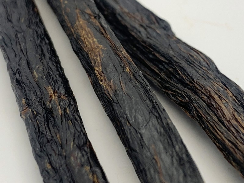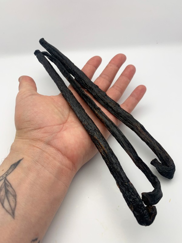 Ingrédients : Vanille Pompona Amazone / Origine : Pérou / Terroir : Barrio Huayco Tarapoto / Récolte : 2022 / Affinage : Naturellement pollinisé, mure et séché au soleil / Affinage : > 6 /12 mois / Humidité : 25 à 40% / Vanilline : 0,988% / Alcool anisique : 0,350% /