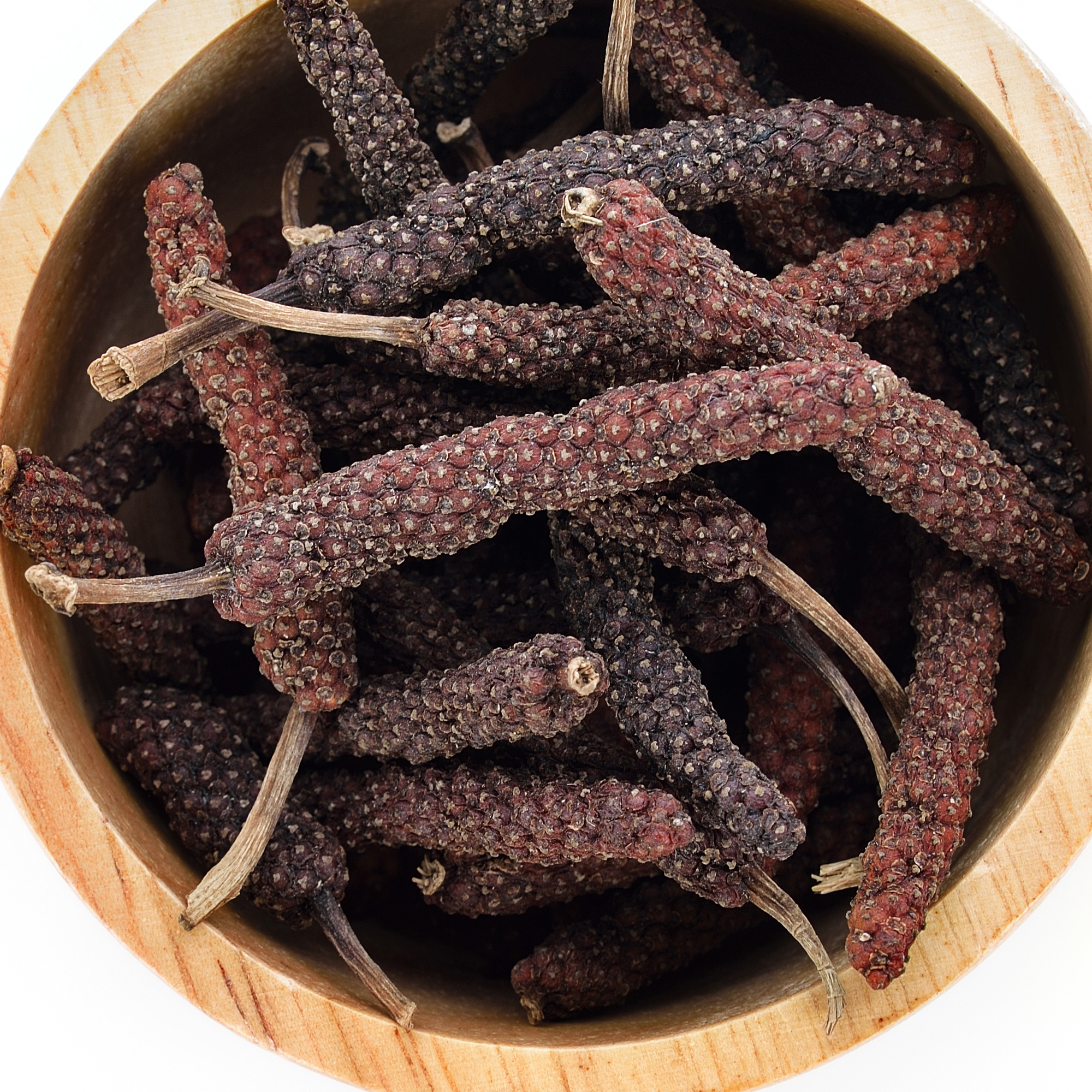 Fruit d’une liane originaire d’Inde, le poivre long pousse à l’état sauvage dans l’Himalaya. Assez peu connu en occident, ce poivre est pourtant le tout premier à avoir été importé en Europe ! On retrouve sa trace dans des écrits grecs et romains de l’antiquité.