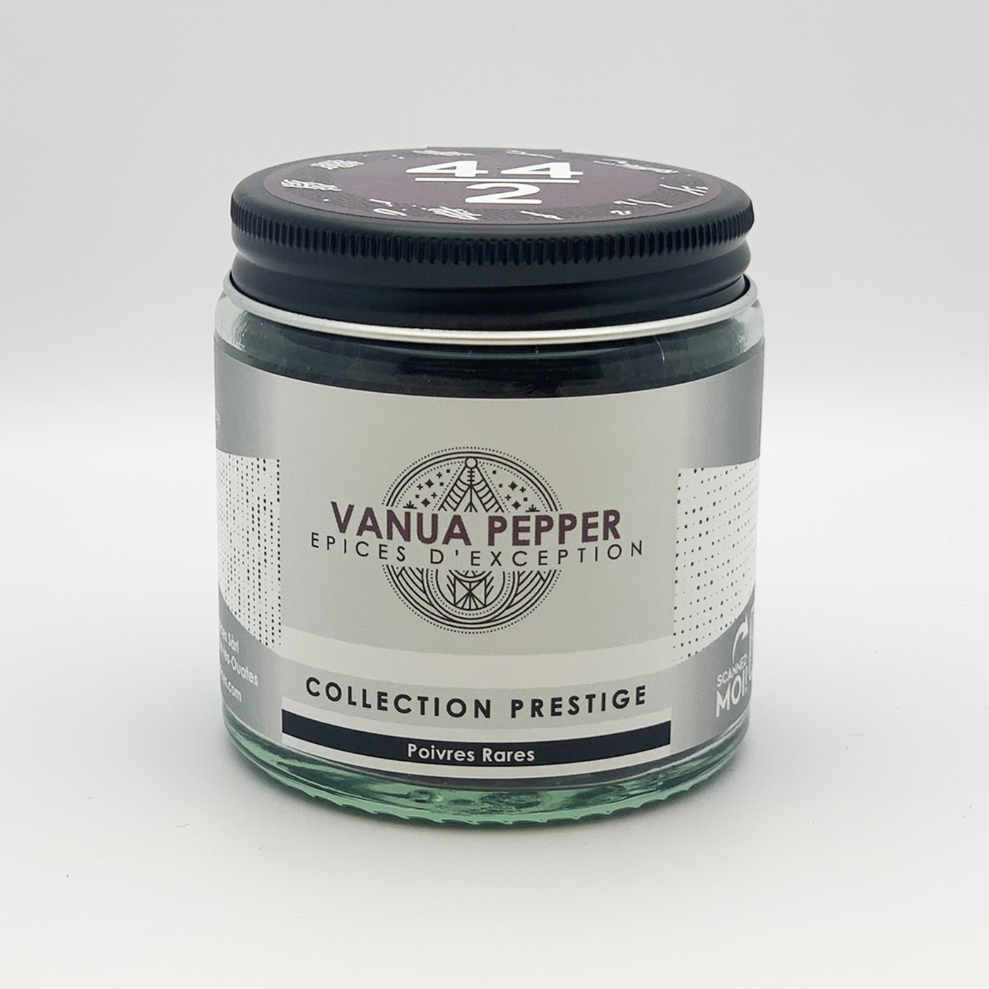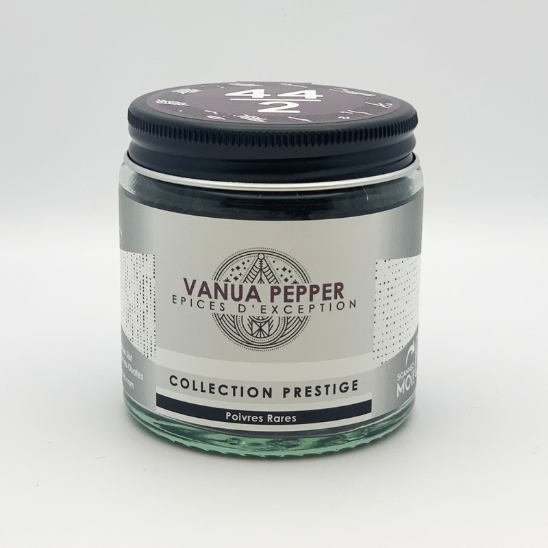 Cultivé sur une terre volcanique, ce poivre noir très rare, originaire de Vanuatu, présente des notes balsamiques, d'eucalyptus et de résine de pin. Il dégage un piquant peu persistant. Toute la culture de ce poivre est cultivée en agriculture biologique.