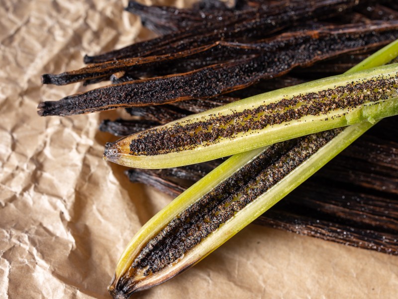 se munir d’un bon couteau puis couper les gousses en deux dans le sens de la longueur. Séparer les gousses en deux puis racler l’intérieur pour en extraire les graines.