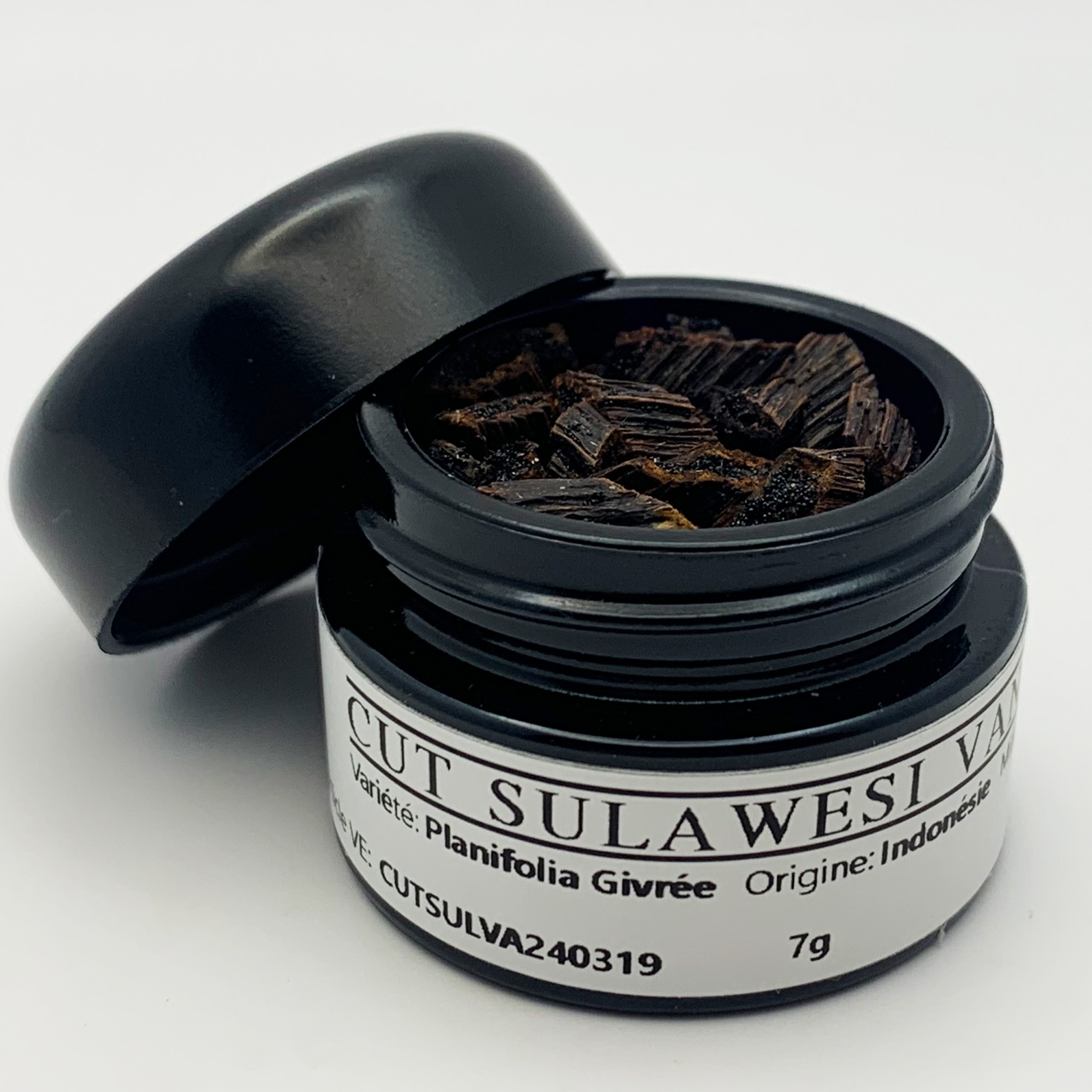 La Vanille Givrée Planifolia de Sulawesi, dans ses éclats de vanille givrée, vous offre une expérience gustative unique, mêlée d'arômes puissants et de saveurs exotiques.