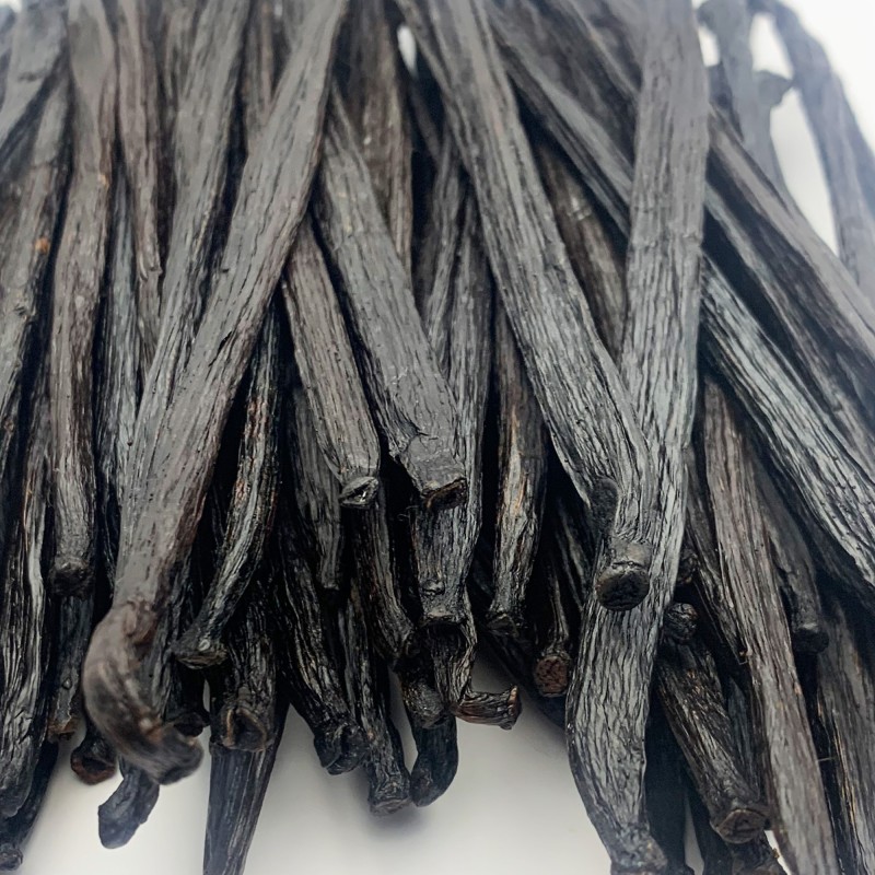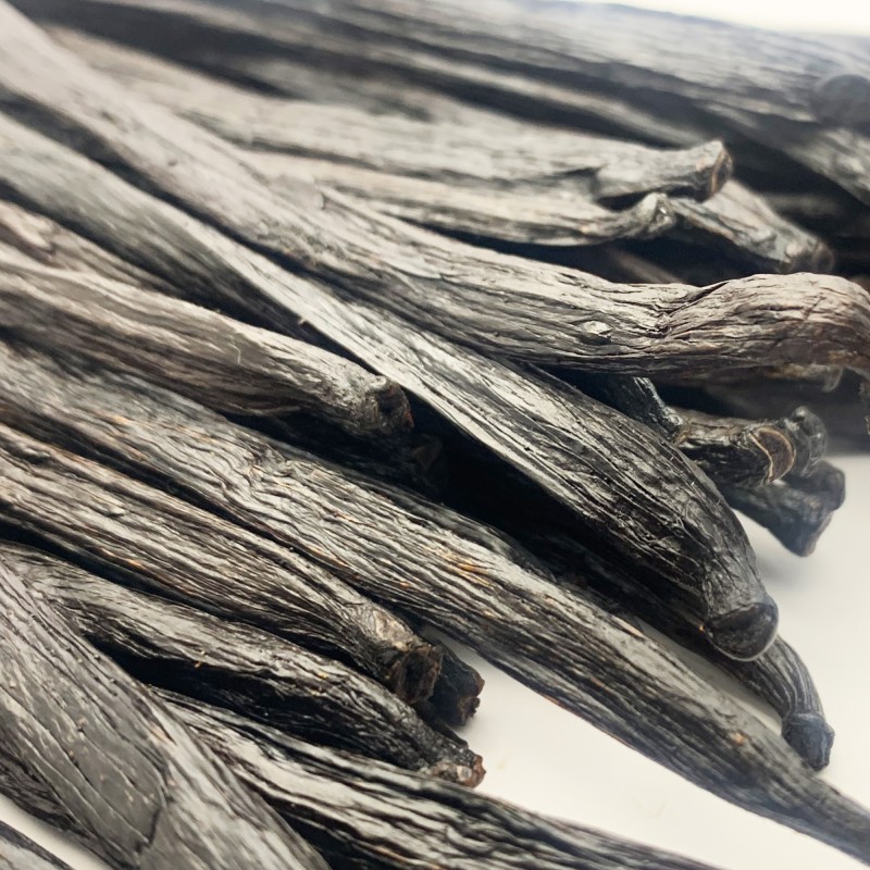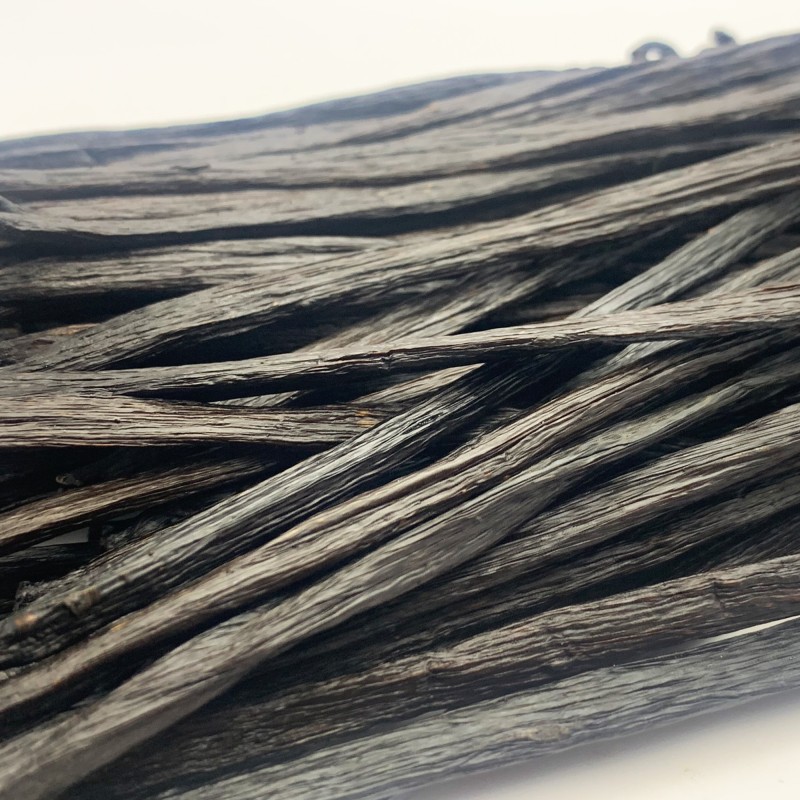 Une hybride de Tahitensis & Planifolia raffiné traditionnellement en "Bourbon", foncé et huileux, aux notes boisées et fumées souples, au goût de vanille riche et profond, parfait pour les chocolats noirs. Une des nouvelles références en vanille.