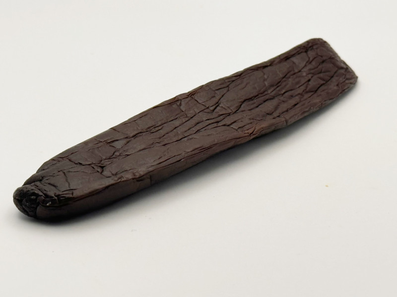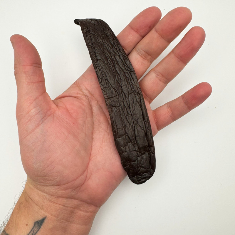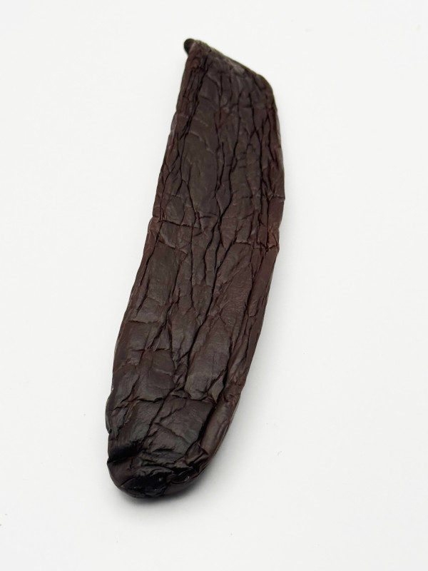 La Vanille Chamissonis, une espèce de vanille unique et très singulière, une gousse de collection et une des plus grosses, charnue et huileuse, aux notes de fruits mûrs, d'anis et de marasquin, aux notes très prononcées de réglisse, de coumarine, de feuille de tabac fraîche et de bois, aux arômes beurrés et floraux en arrière-plan. Cette espèce est si rare, c'est un autre fabuleux cadeau de la nature et seuls quelques agriculteurs la repèrent à l'état sauvage et la cultivent parfois sous la canopée de la forêt tropicale de l'océan atlantique. C'est une autre production limitée, réservée aux Cheffes et aux Chefs pour des créations d'exception.