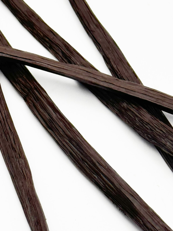 Ingrédients : Vanille Planifolia Bio Gourmet / Origine : Congo / Terroir : Virunga / Semliki / Récolte : 2023 / Affinage : Mûr et séchée au soleil / Affinage : >6 mois / Humidité : +- 35% / Vanilline : +- 3%