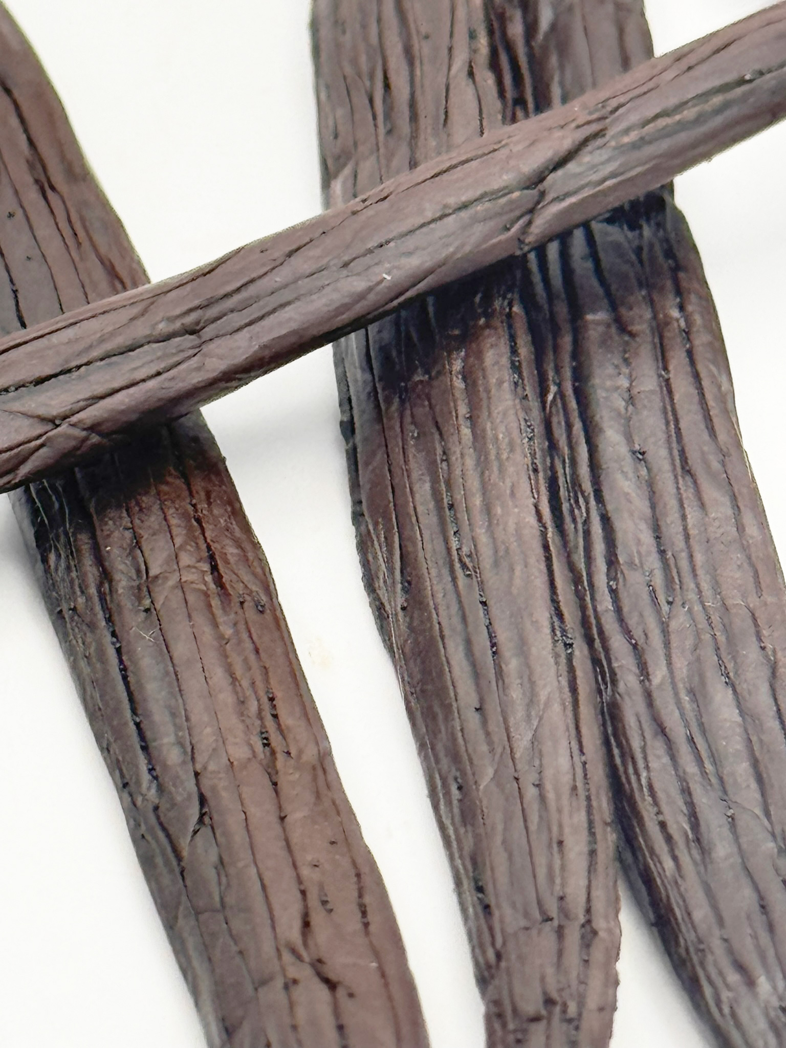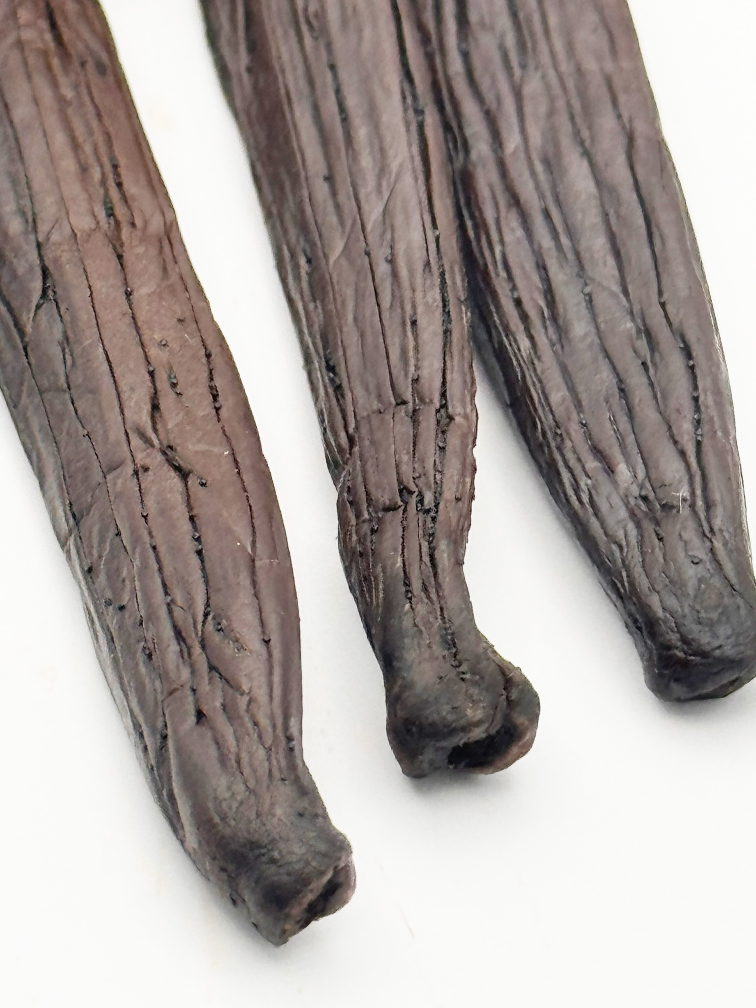 Les gousses de vanille Tahitensis Tahiti de Taha'a sont un peu plus courtes mais charnues, épaisses et grasses de couleur marron foncé brillante, d'une grande richesse aromatique allant du jasmin au noyau de cerise. La vanille Taha'a Tahitensis a son propre parfum floral délicat, avec des notes de cerise, d'amande et une touche exotique de fruits sucrés et mûrs, avec un arôme plus subtil qui est souvent décrit comme rappelant les fleurs tropicales et une douceur douce et crémeuse. . Côté saveur, la vanille Taha'a Tahitensis offre un profil complexe et nuancé. Ils possèdent un goût riche et crémeux avec des nuances fruitées de cerise, d'ananas et même des notes de mangue. La saveur est délicate lui permettant de se marier harmonieusement avec un large éventail de créations culinaires. Que ce soit dans les desserts, les boissons ou les plats salés, les gousses de vanille Taha'a ajoutent une touche d'élégance et de sophistication à n'importe quelle recette, rehaussant l'expérience gustative globale.