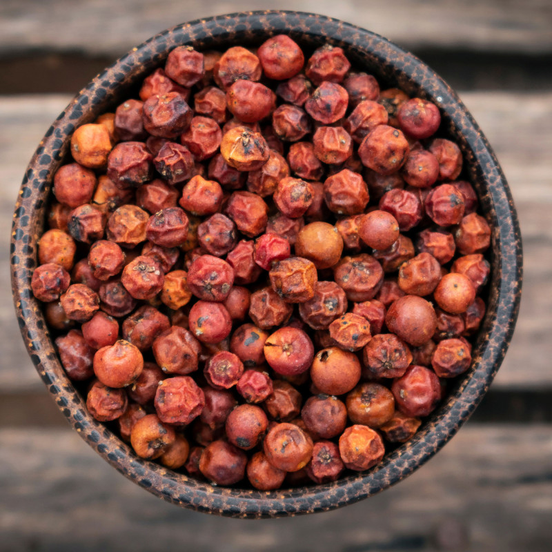 C'est pourquoi le vrai poivre rouge est très difficile à trouver. Grâce à son haut degré de maturité, le vrai poivre rouge est particulièrement aromatique et presque fruité, avec une forte piquant.
