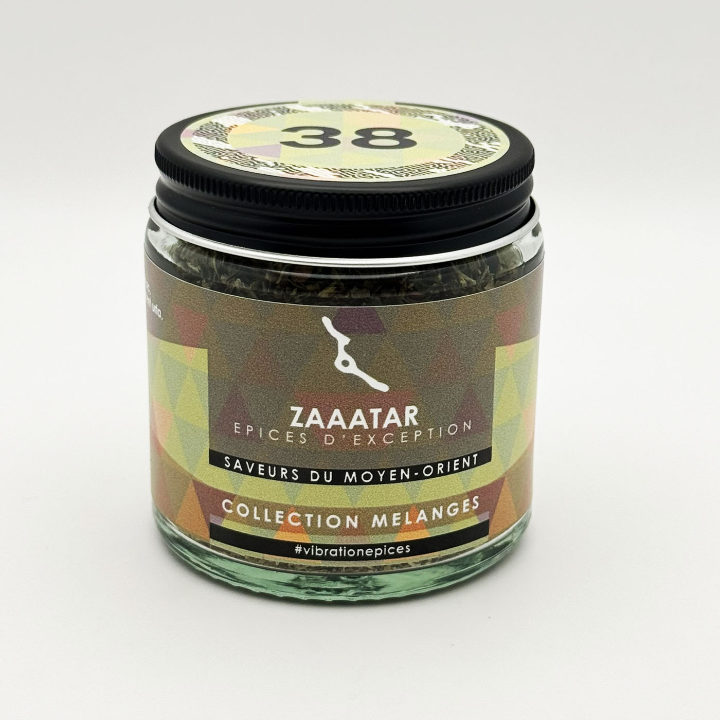 Le zaatar est un mélange d’épices traditionnel du Moyen-Orient, généralement composé d'herbes aromatiques, de sumac et de graines de sésame grillées, qui offre un parfum à la fois terreux, légèrement acidulé et subtilement noisetté.