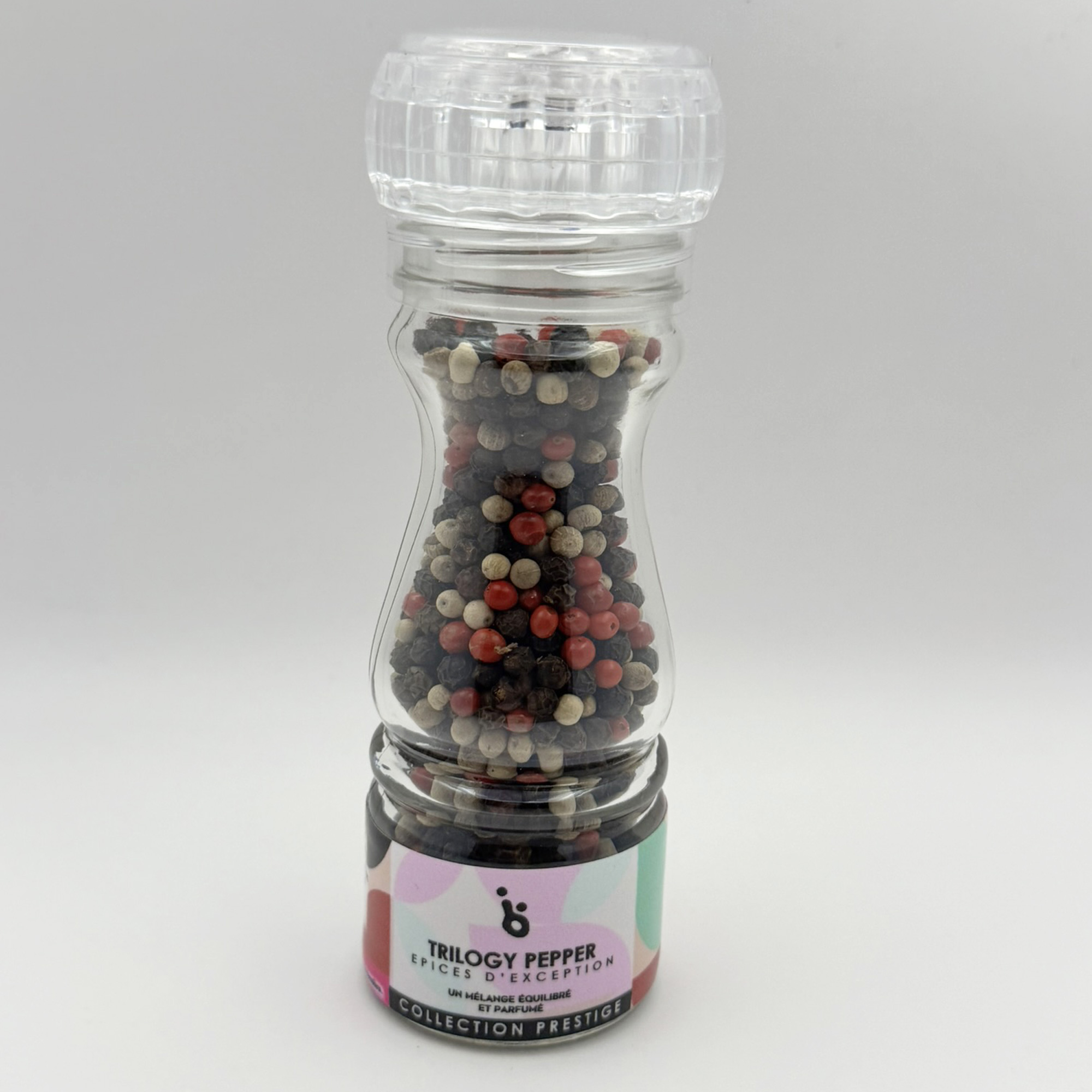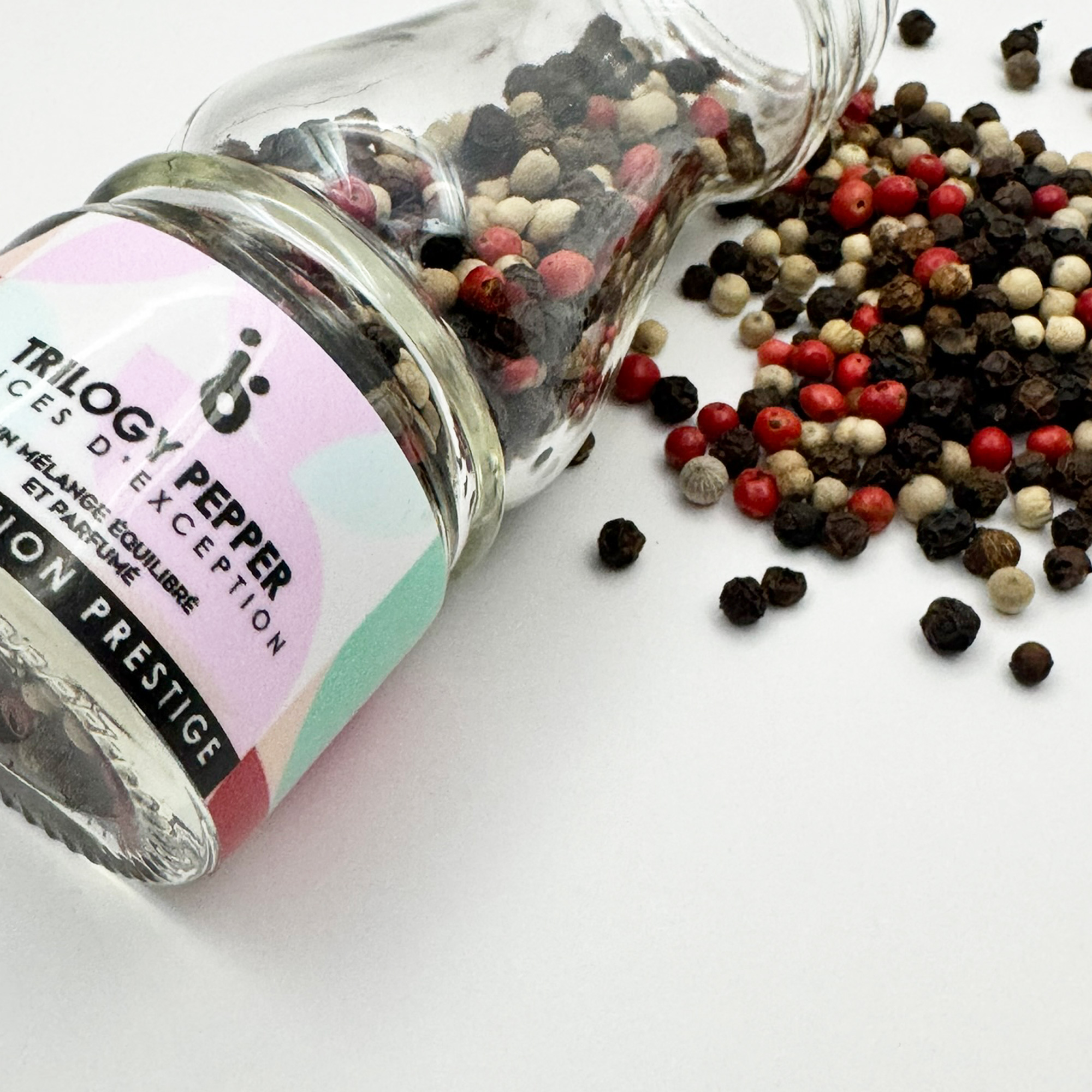 Voici un mélange équilibré entre les baies roses de Madagascar, le poivre noir du Sri Lanka et le poivre blanc du Pondichery
