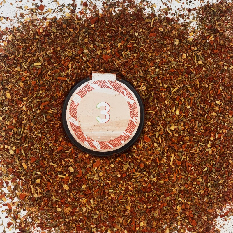 Ingrédients : Paprika doux, tomates, paprika concassé, basilic, origan, ail, romarin, oignon, thym, sauge, paprika fumé, poivre noir Malabar. (Qualité BIO)