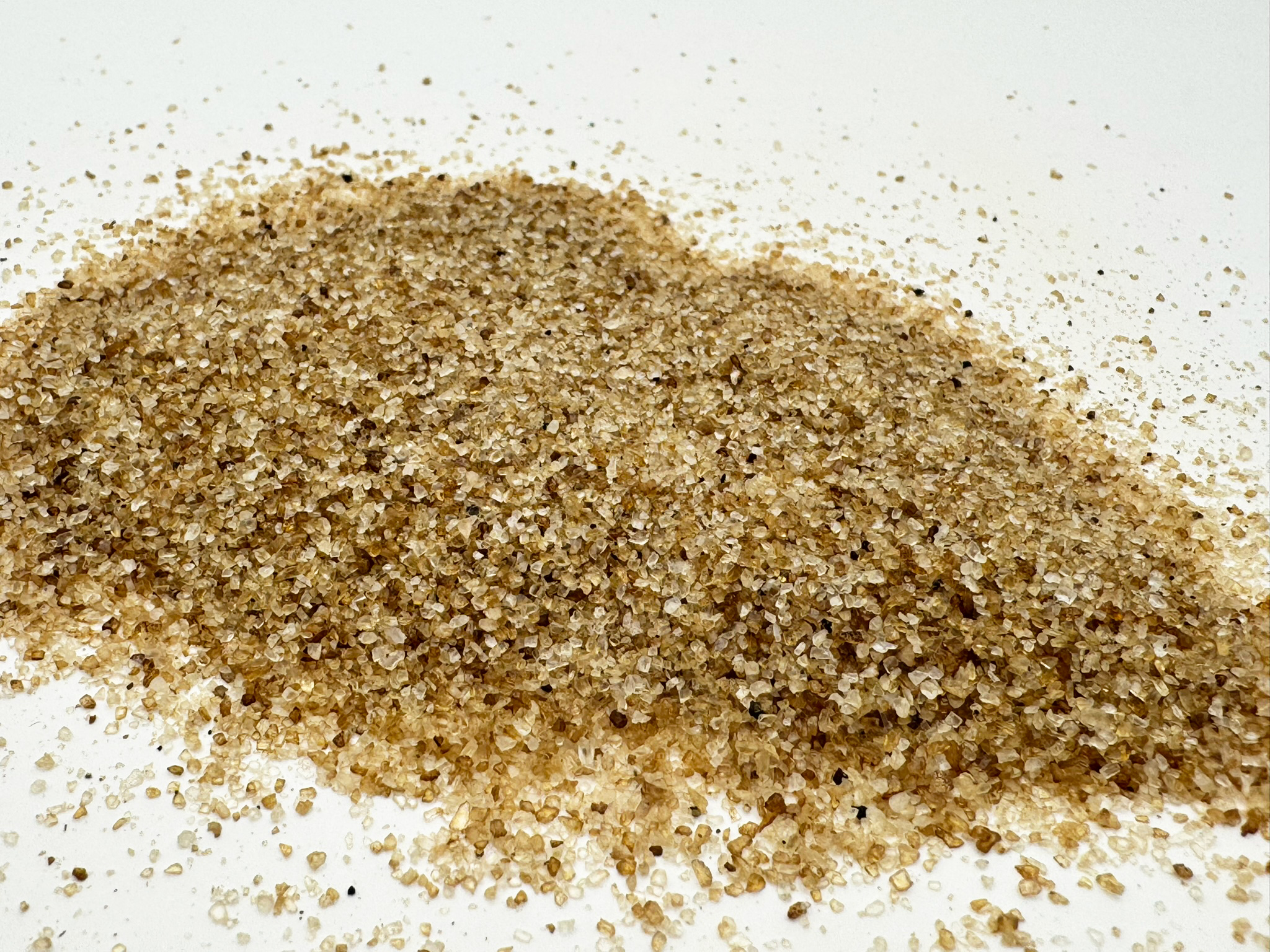 Le sel fumé à la pomme de associe un sel marin naturel du Pakistan au fin arôme de bois de pommier brûlé à froid. La granulométrie fine de 0,2–1,0 mm assure une répartition homogène et une note fumée discrète mais bien perceptible. Les tons chauds bruns et jaunes du sel fumé soulignent son caractère artisanal et authentique.