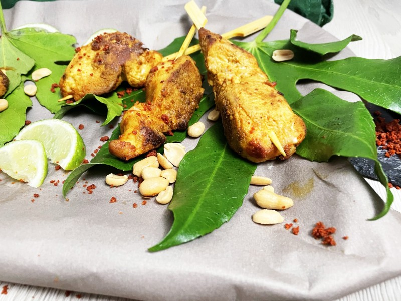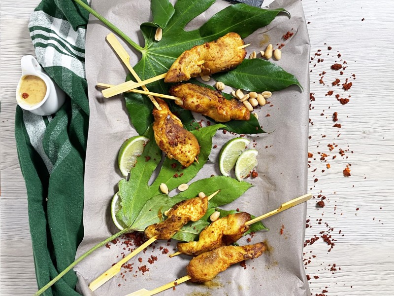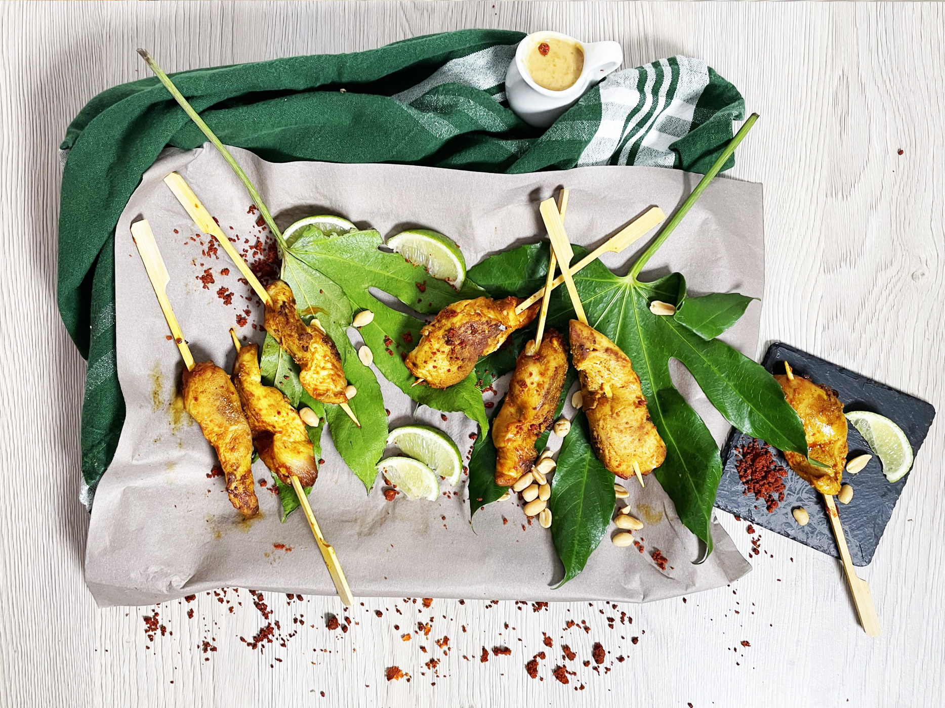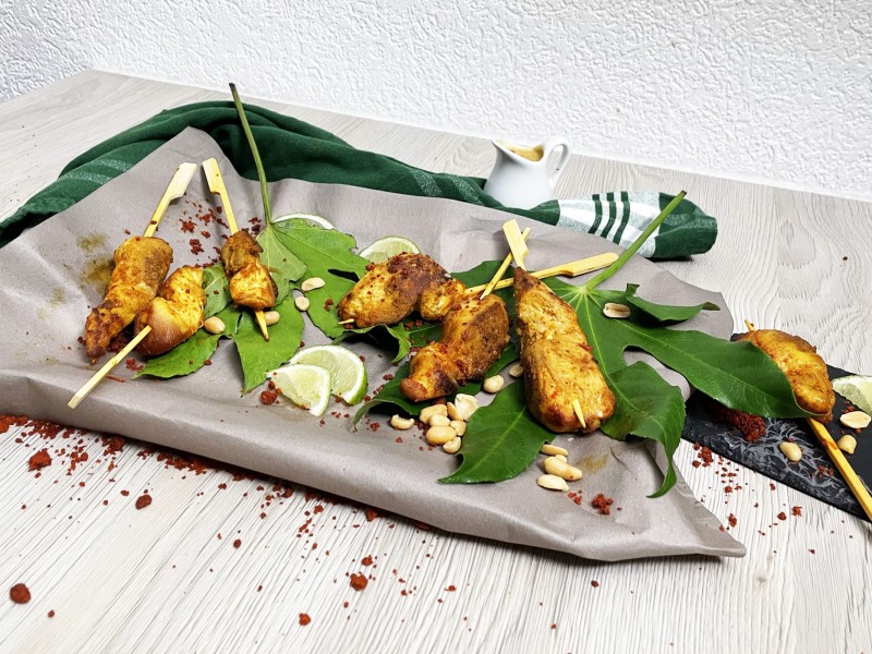- Servir les brochettes de poulet satay réchauffées, avec la sauce légèrement tiède, ou froide selon votre goût.