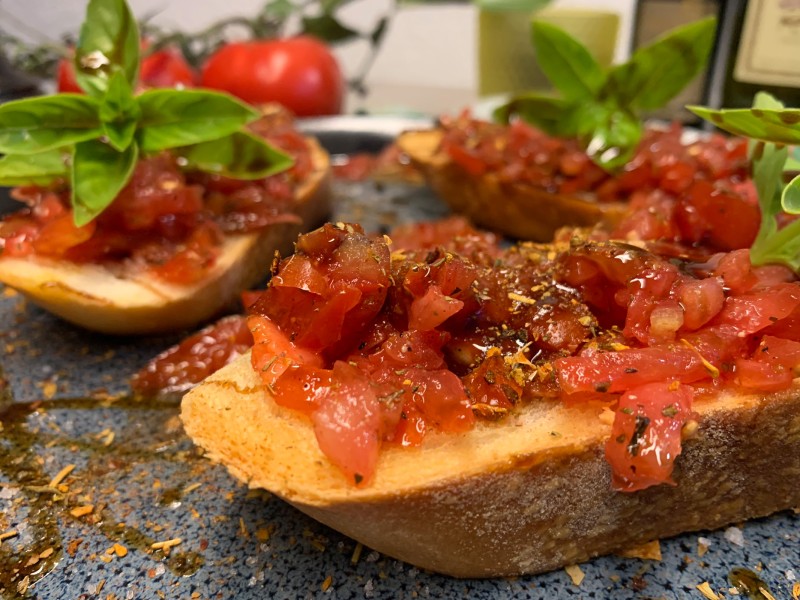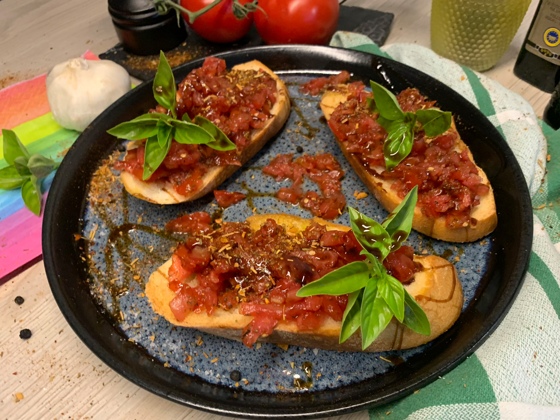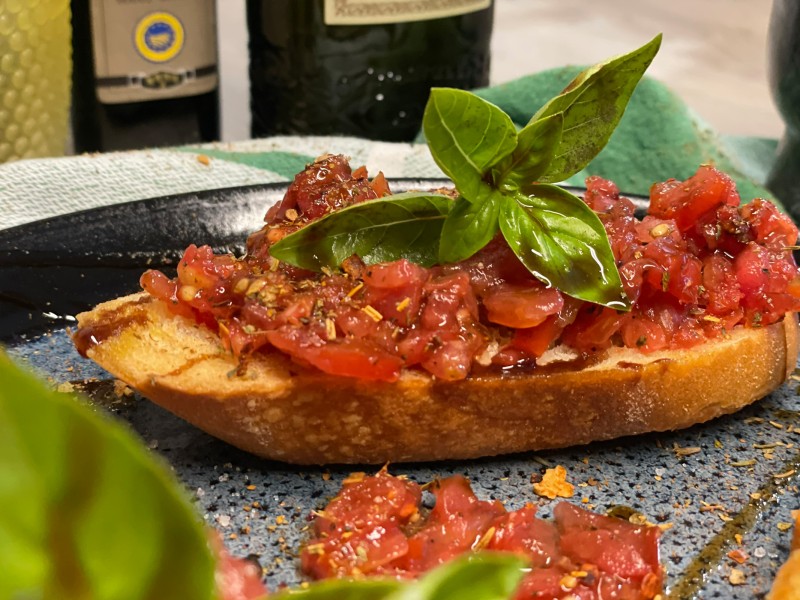 - Saupoudrer d’un peu de via Bellini, ajouter quelques feuilles de basilic frais et napper d’un filet de crème de vinaigre balsamique.